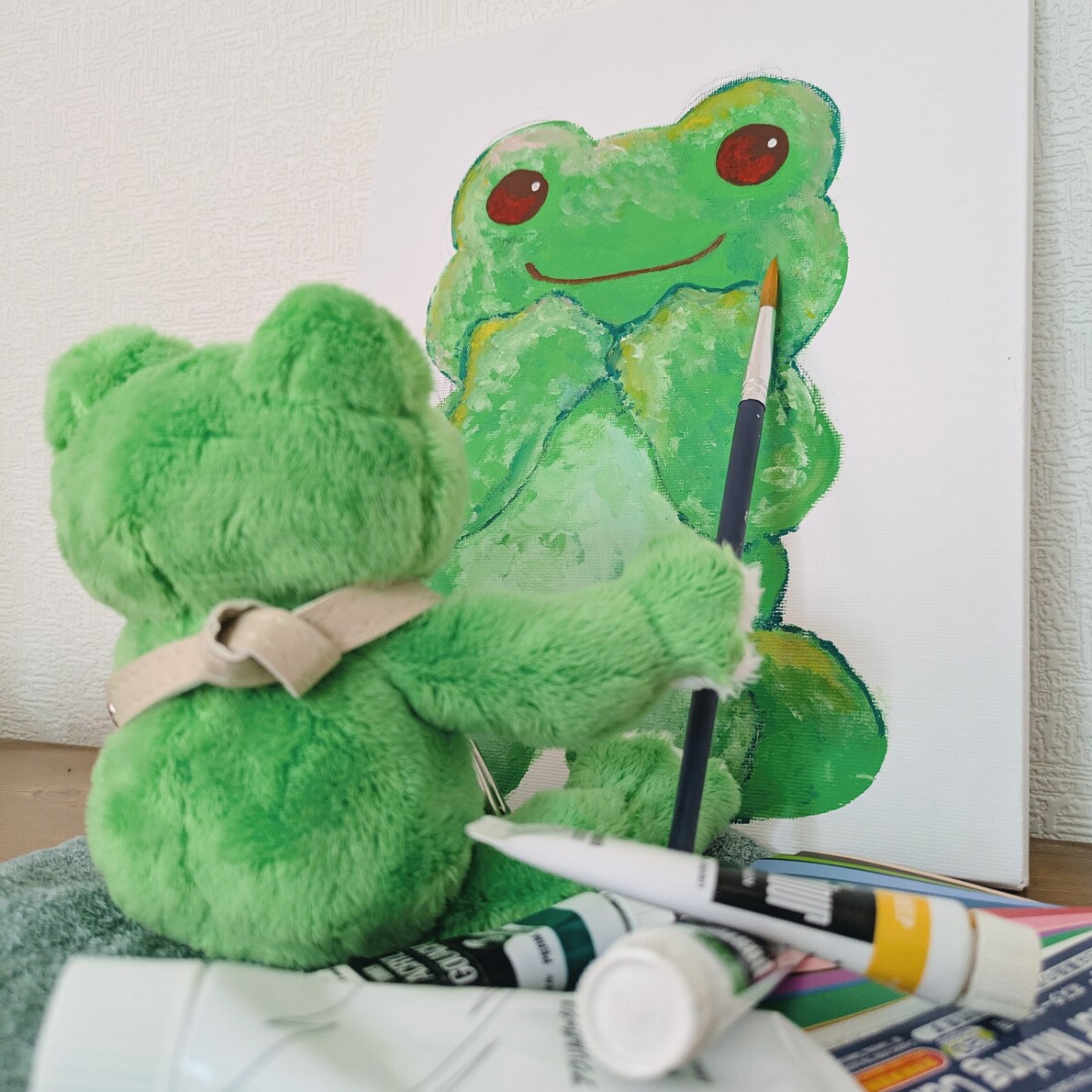 一心不乱にキャンバスに向かう画家ピクルス。見事な筆づかいで描くのは、自分よりも大きな自画像。鮮やかな黄色を差し色に、明るく優しい内面まで表現されているようです。