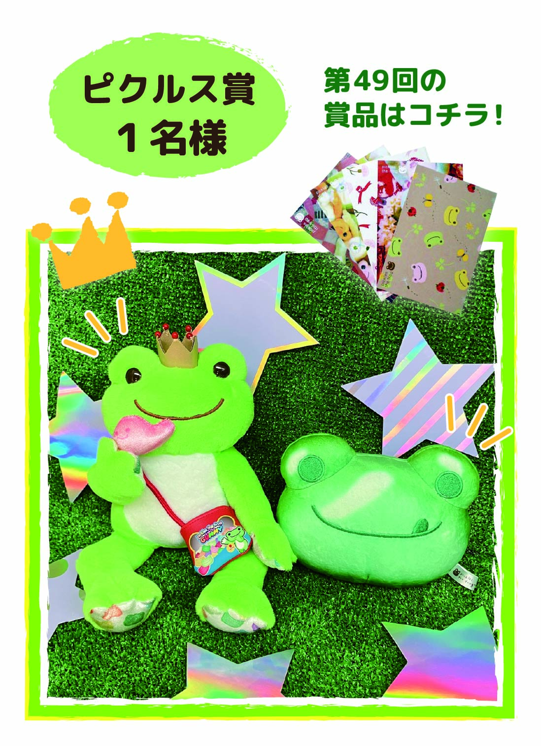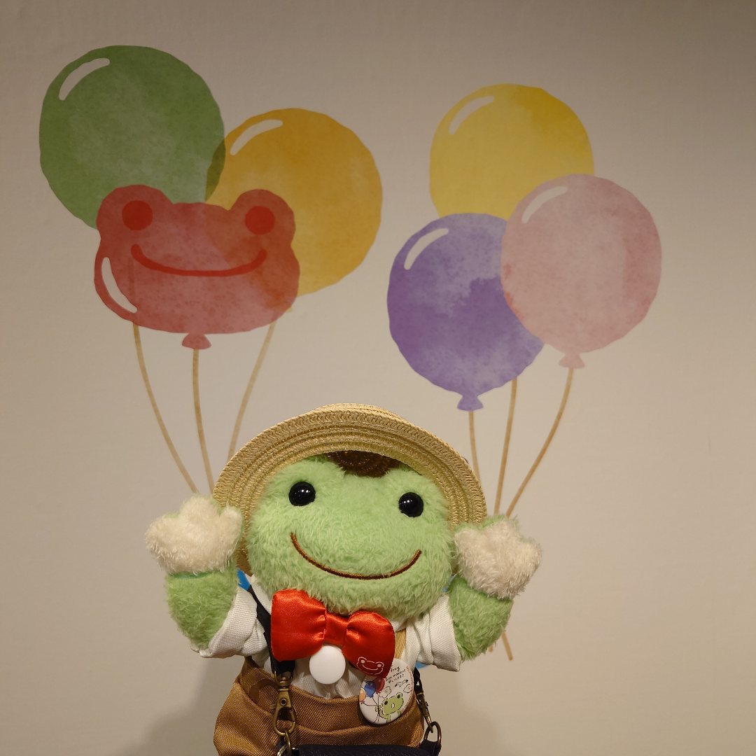 麦わら帽子に蝶ネクタイでおめかししたピクルスが、両手を上げて、壁に描かれた風船を持つポージング。このまま風に吹かれたら、フワリと大空の旅に飛び立てそうです。