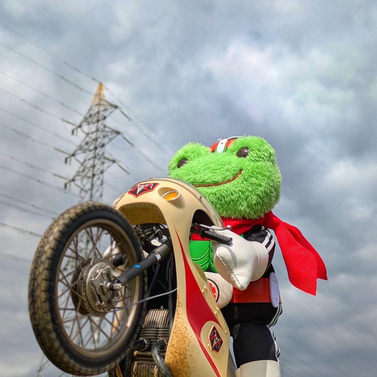 ライダースーツを身にまとい、勇ましくバイクに跨るピクルス。ツーリング日和の下、秋の空気を胸いっぱいに吸い込んだら、世界を守るヒーローのように、風を切って走るのだ! ©石森プロ・東映