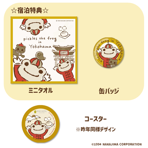 さらに宿泊特典として、限定デザインのミニハンカチタオルや缶バッジ、コースターのプレゼントも!