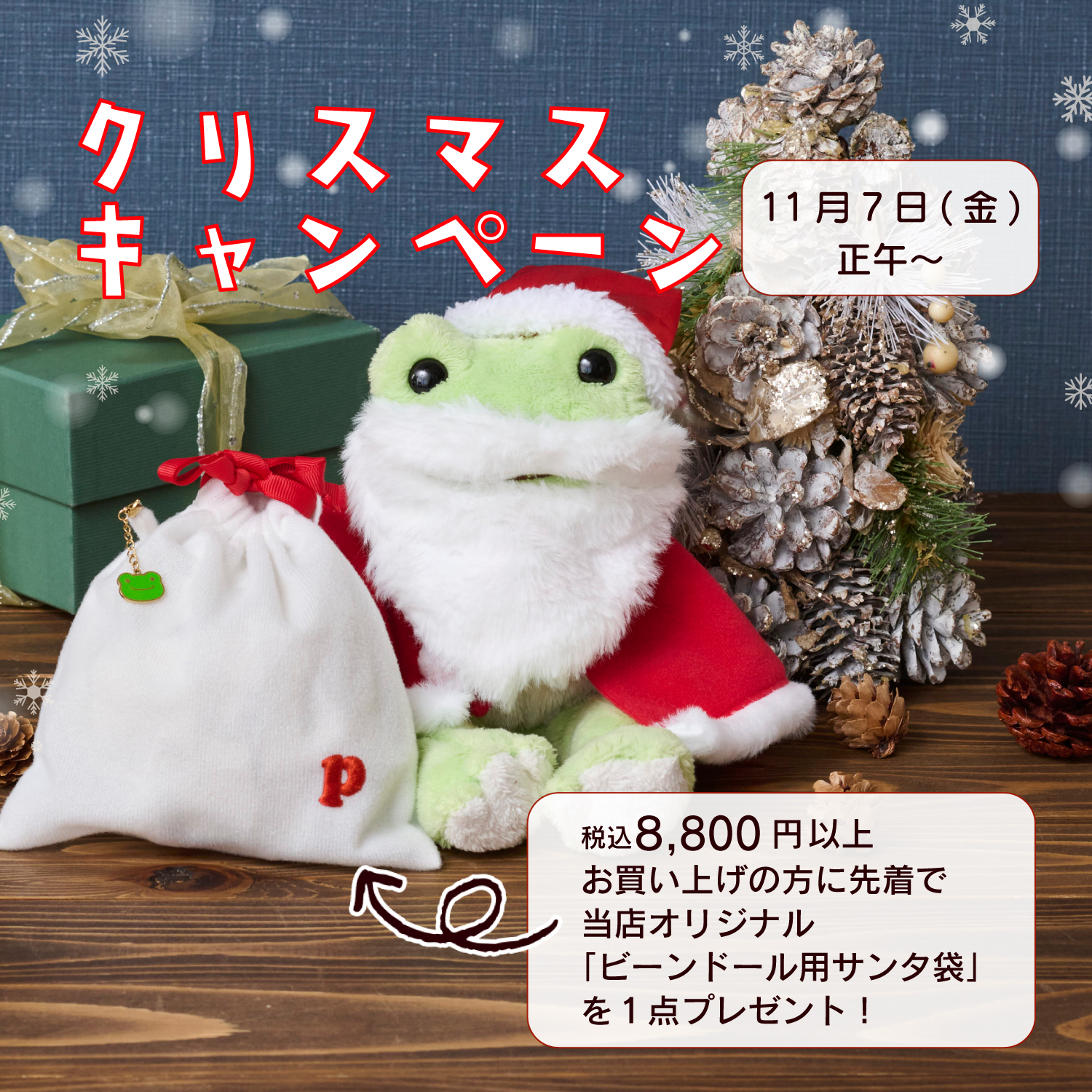 1回のお会計で¥8,800(税込)以上お買い上げの方に、先着で当店オリジナル「ビーンドール用サンタ袋」をプレゼント!
