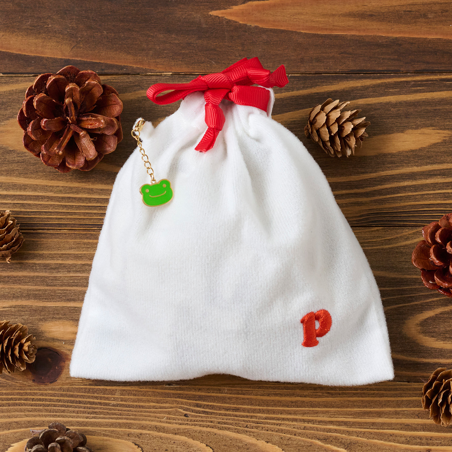 サンタ袋はPの刺繍とチャームがついた特別仕様です♪