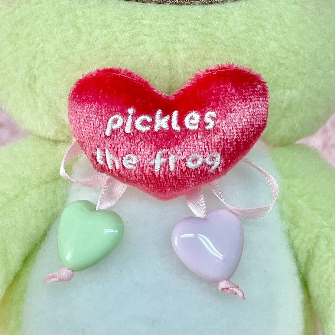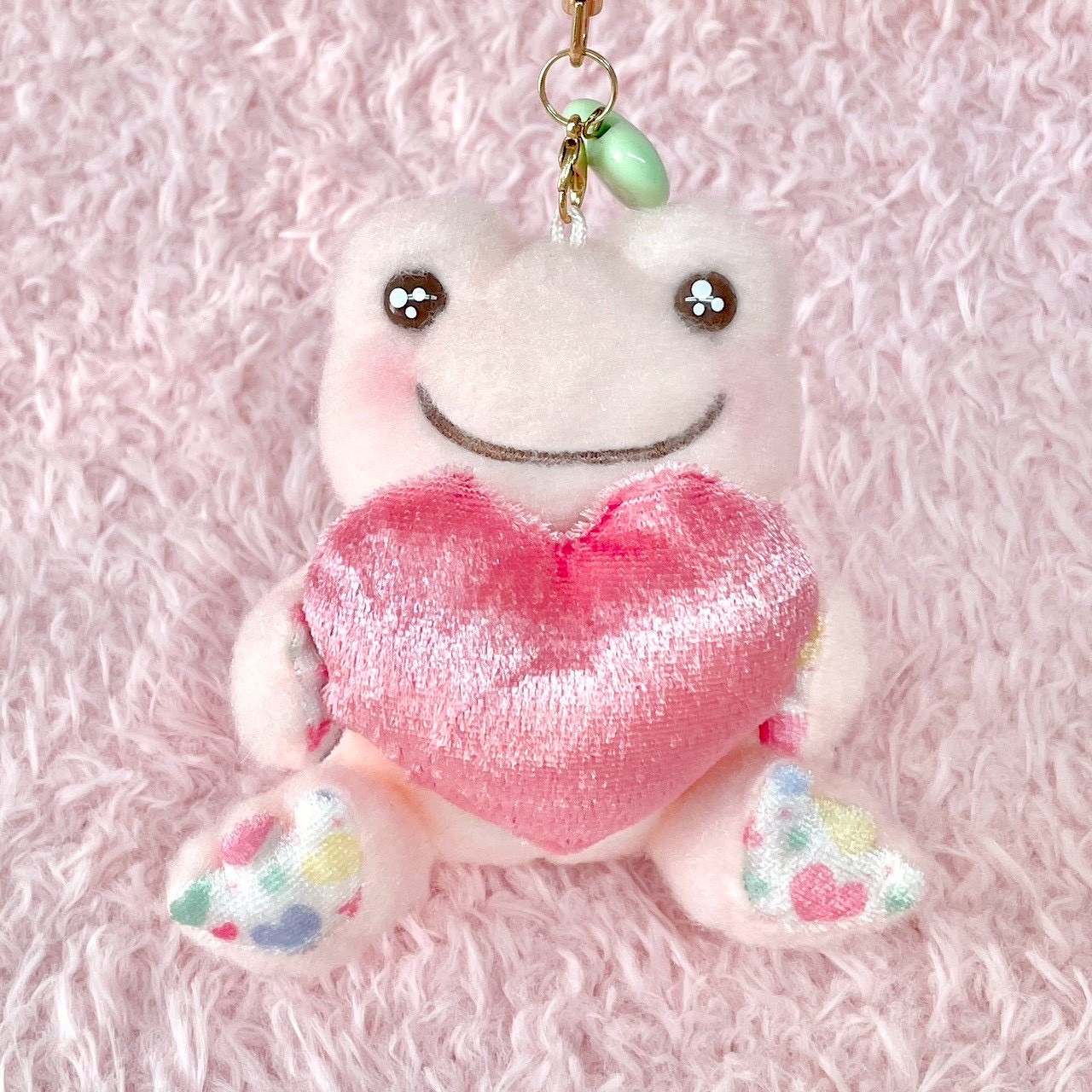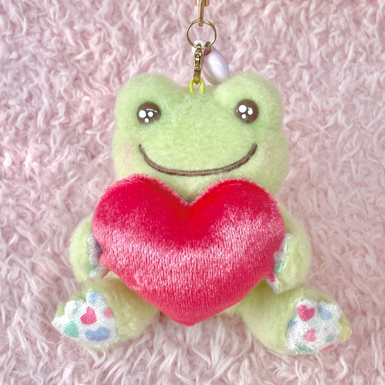 ビーンドールと マスコットにはハートのビーズがついています。