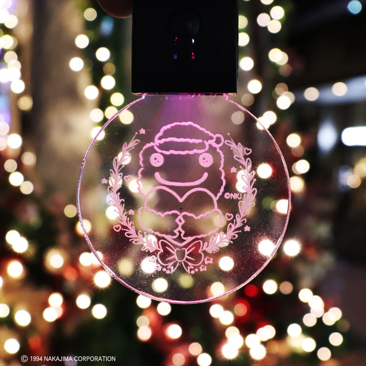 オーナメント風の“キラキラ缶バッジ”をタペストリーのツリー部分につければ、