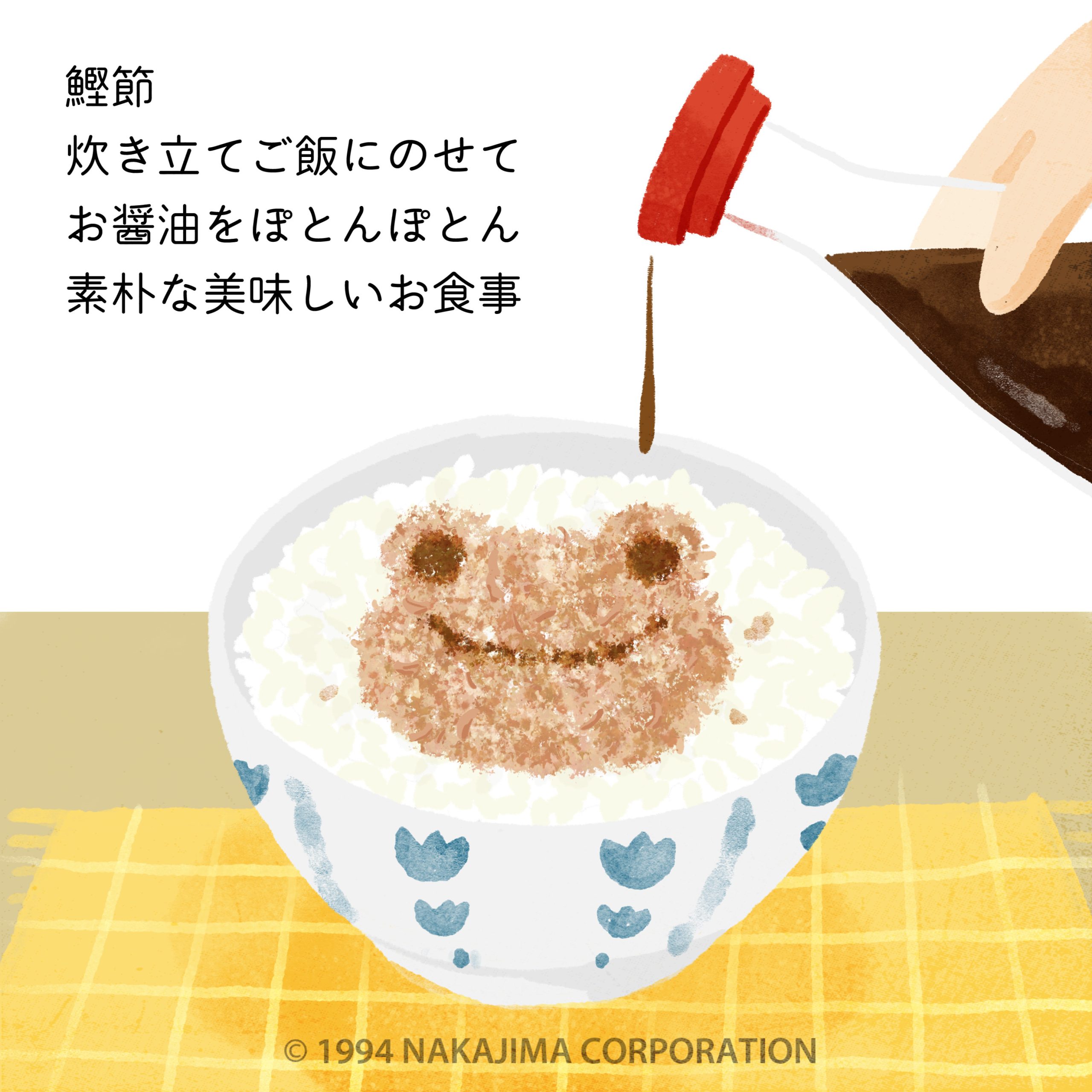 鰹節 炊き立てご飯にのせて お醤油をぽとんぽとん 素朴な美味しいお食事 #かえるのピクルス #picklesthefrog #oneday #11月 #萌蛙匹克 #泡菜青蛙 #前日 #鰹節の日 #お醤油 #平岡淳子 #吉井みい #ある日のピクルス