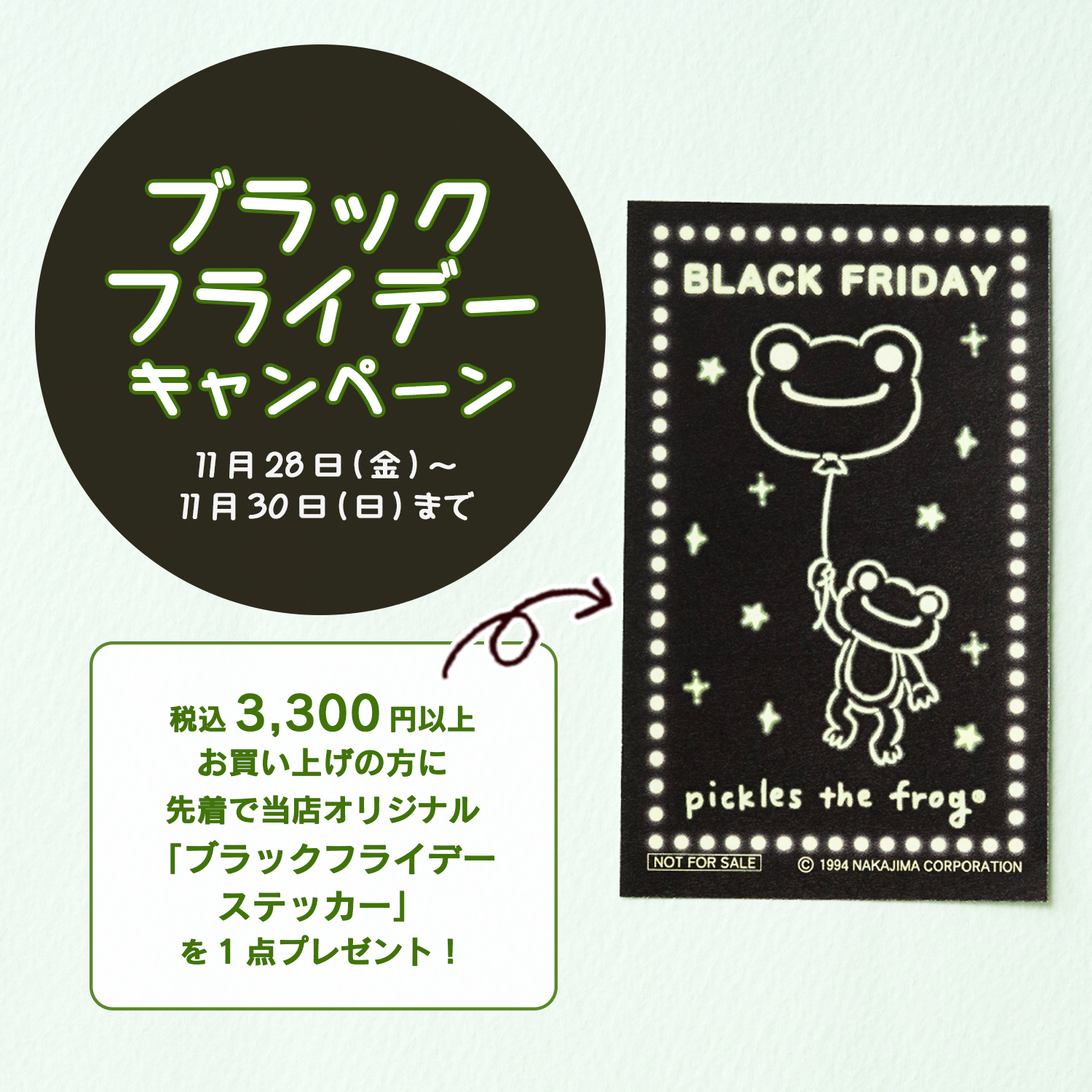 期間中に3,300円(税込)以上のお買い物で、ブラックフライデー限定のステッカーをプレゼントいたします。