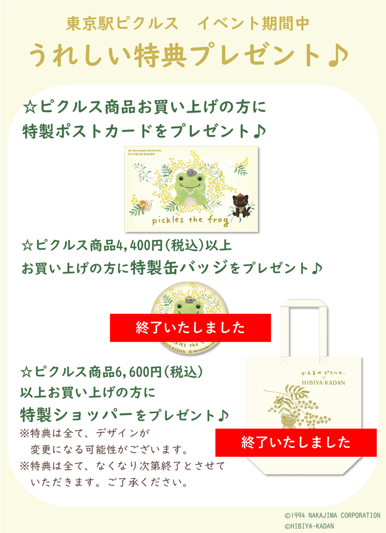 東京駅イベント「ボン・ボヤージュ!」にて配布しておりました、お買上げプレゼントの特製缶バッジ、ショッパーが予定数に達したため終了いたしました。