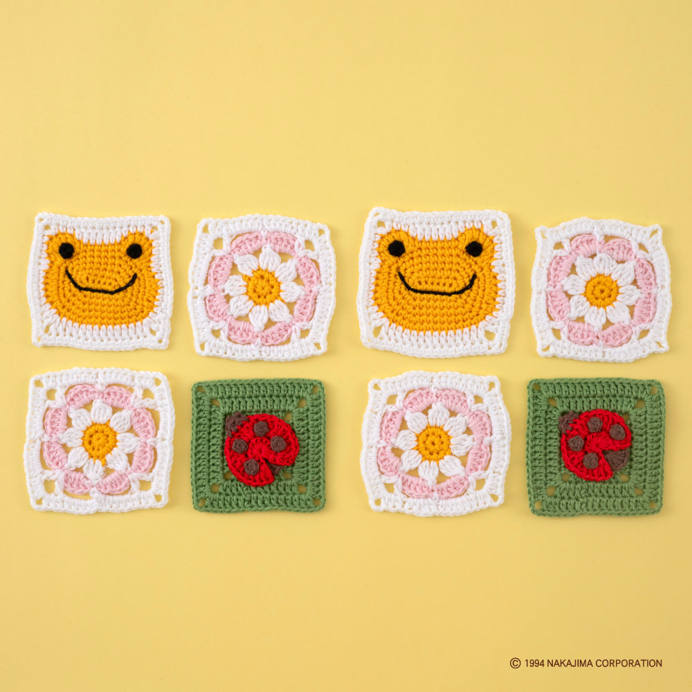 かえるのピクルスかぎ針編みモチーフキット おひさま×てんとう虫くん