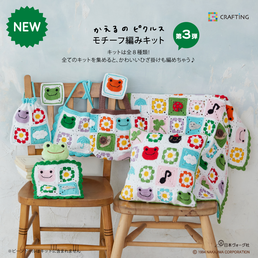 かえるのピクルスのモチーフ編みキットが新登場!
